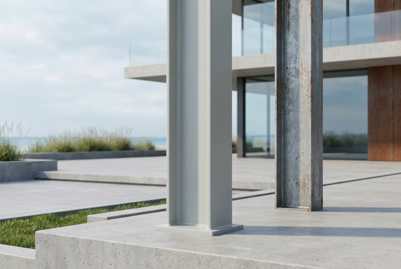 | مقاومة التآكل الساحلي | مرتفعة جداً مع راتنج مناسب | منخفضة دون حماية دورية | جيدة مع احتمال تأثر السطح | متوسطة | جيدة مع احتمال تشققات |