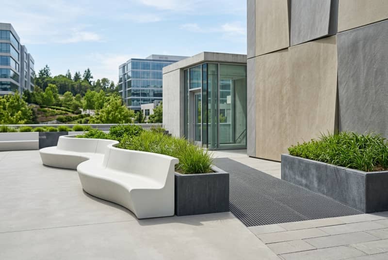 اعتمدت الجهة المالكة وحدات أثاث حضري وأحواض زراعة مركبة تتحمل الرطوبة والتنظيف المتكرر. النتائج أظهرت ثباتاً جيداً في اللون والبنية مع تقليل أعطال الحواف مقارنة بخيارات سابقة.